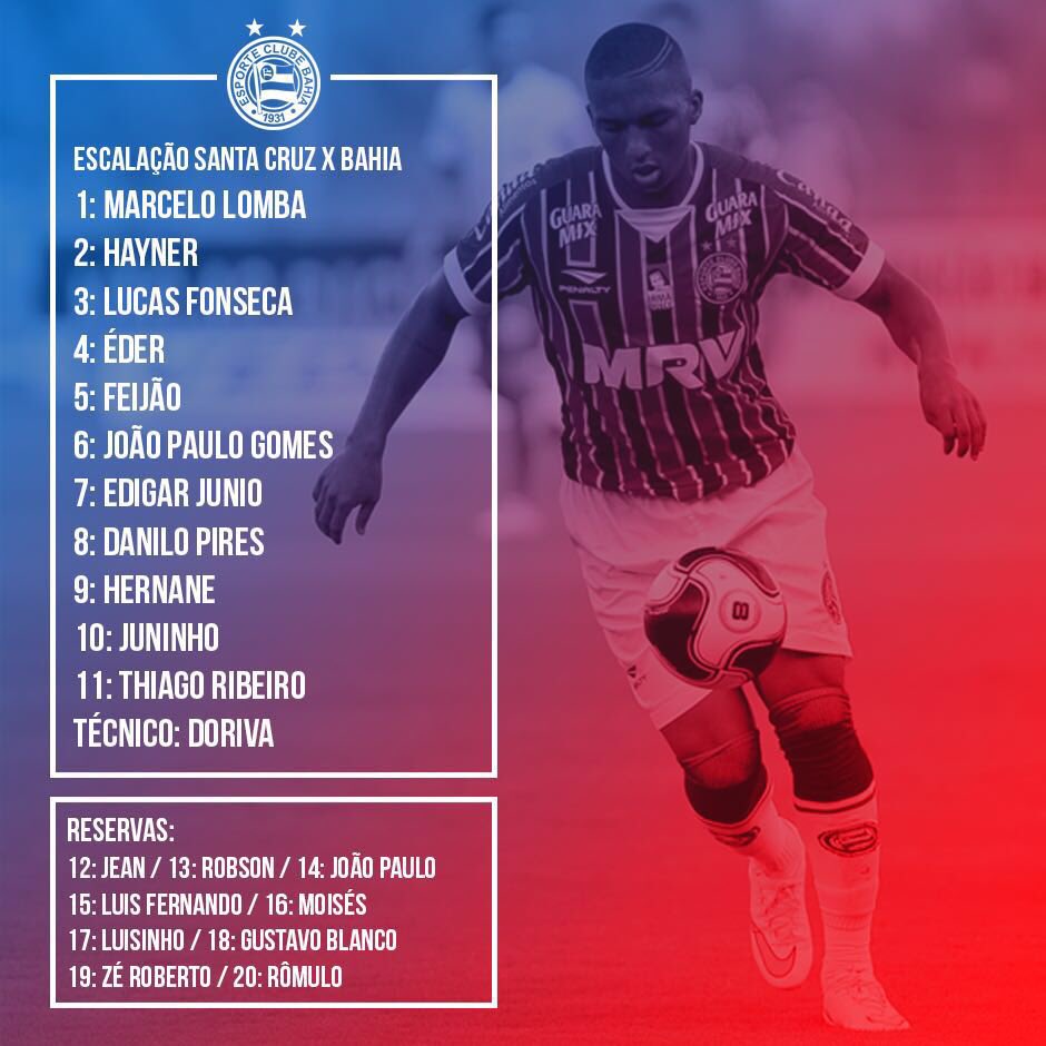 O treinador Doriva vai poder escalar praticamente toda a equipe que vinha jogando. Em relação ao último jogo, quando enfrentou o Fluminense de Feira de Santana, pelo Campeonato Baiano, o Bahia terá apenas uma mudança na escalação. Precisando cumprir suspensão automática na Copa do Nordeste, Paulo Roberto cede vaga no meio-campo para o ex-coral Danilo Pires.