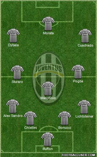 Diamo credito al 4-3-3. In quest'ottica, spazio a Buffon tra i pali, retroguardia composta da Lichtsteiner a destra, con Alex Sandro in ballottaggio con Evra a sinistra, al centro Bonucci e Chiellini. Marchisio in regia, a completare la mediana Sturaro e Pogba. Dybala e Cuadrado in appoggio a Morata. Con la Juve a due punte candidatura importante di Mandzukic.